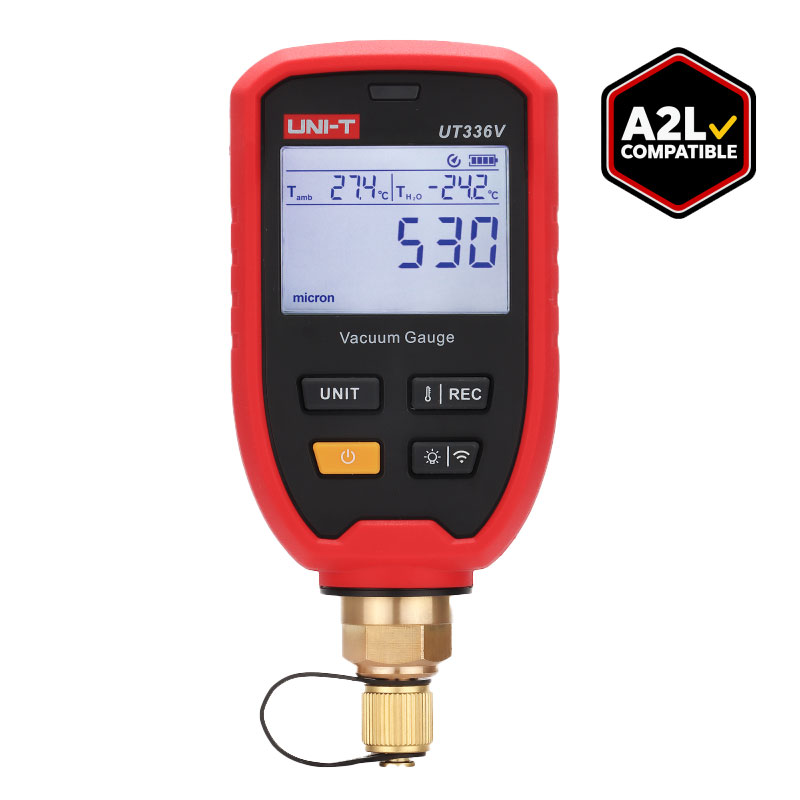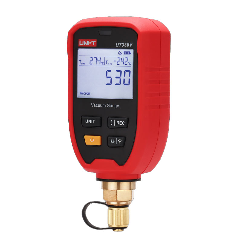 UT336V, soğutma ve ısı pompası sistemlerinde kritik ölçüm görevleri için tasarlanmış, entegre Bluetooth özellikli kompakt, yüksek hassasiyetli bir dijital vakum ölçerdir.